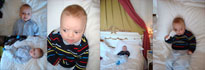 Hälsat på Oscars farfar och Sheila i England: Vi lämnade ett vårlikt Dublin i mitten på februari och hamnade efter en färjetur över Irländska sjön i ett vintrigt England. Bilturen som normalt tar ca 6h tog istället den dubbla tiden och vid midnatt var vi till slut framme hos Anders, Sheila och Molly (hunden - som var förvånansvärt lugn och förstående inför den nya familjemedlemmen). "Uncle Sam" (Sheilas son Sam) kom också upp från London för att hälsa på Oscar. Henrik och Ulrika fick chansen att vara barnfria några timmar när farfar och Sheila passade Oscar. Tiden spenderade vi genom att shoppa loss inne i Norwich och äta lunch med tillhörande vin, kändes lyxigt och lite läskigt att vara "lediga"